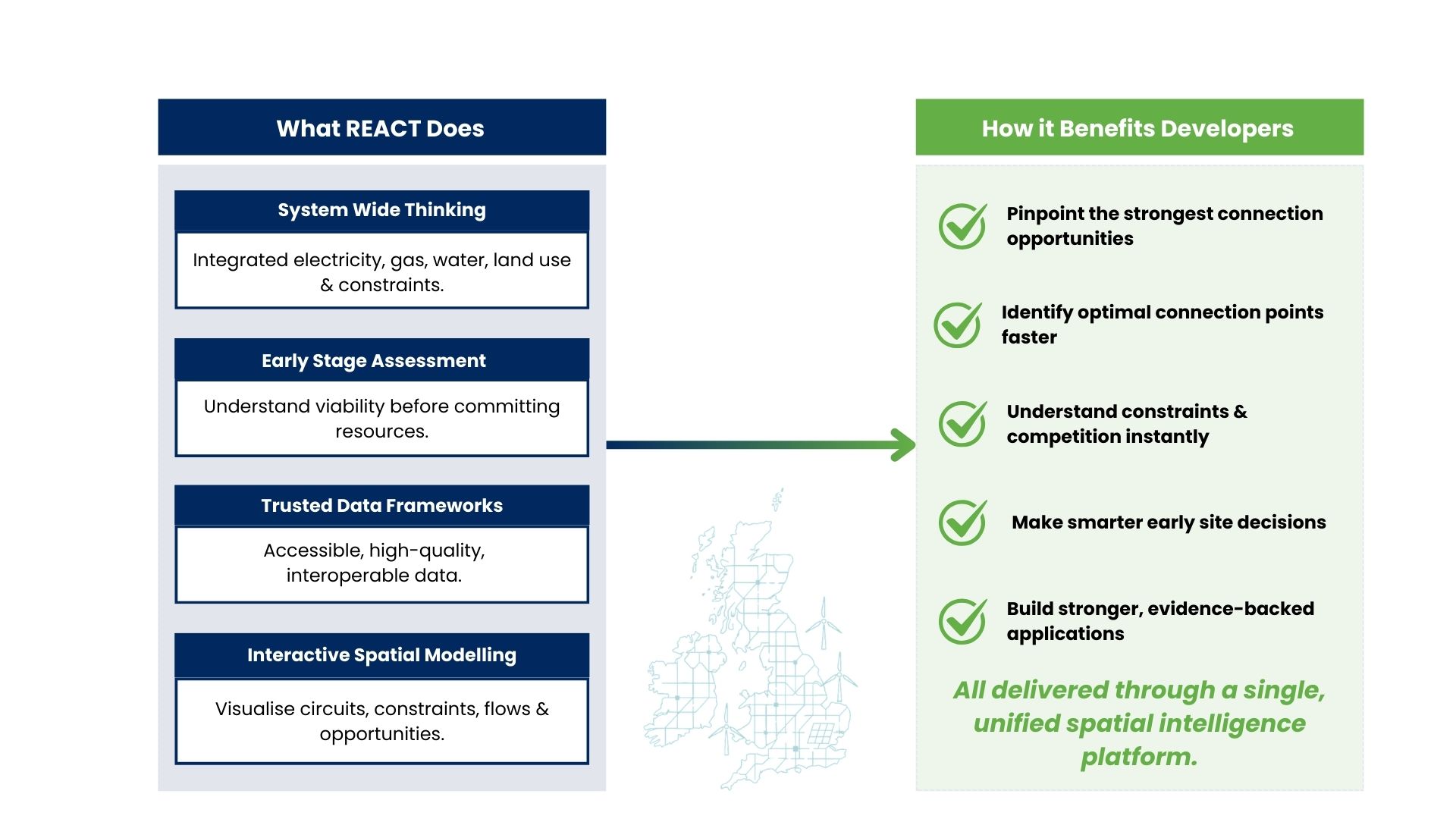 By bringing clarity to complexity, REACT supports more efficient project development and, ultimately, the faster delivery of the clean energy infrastructure the UK needs.